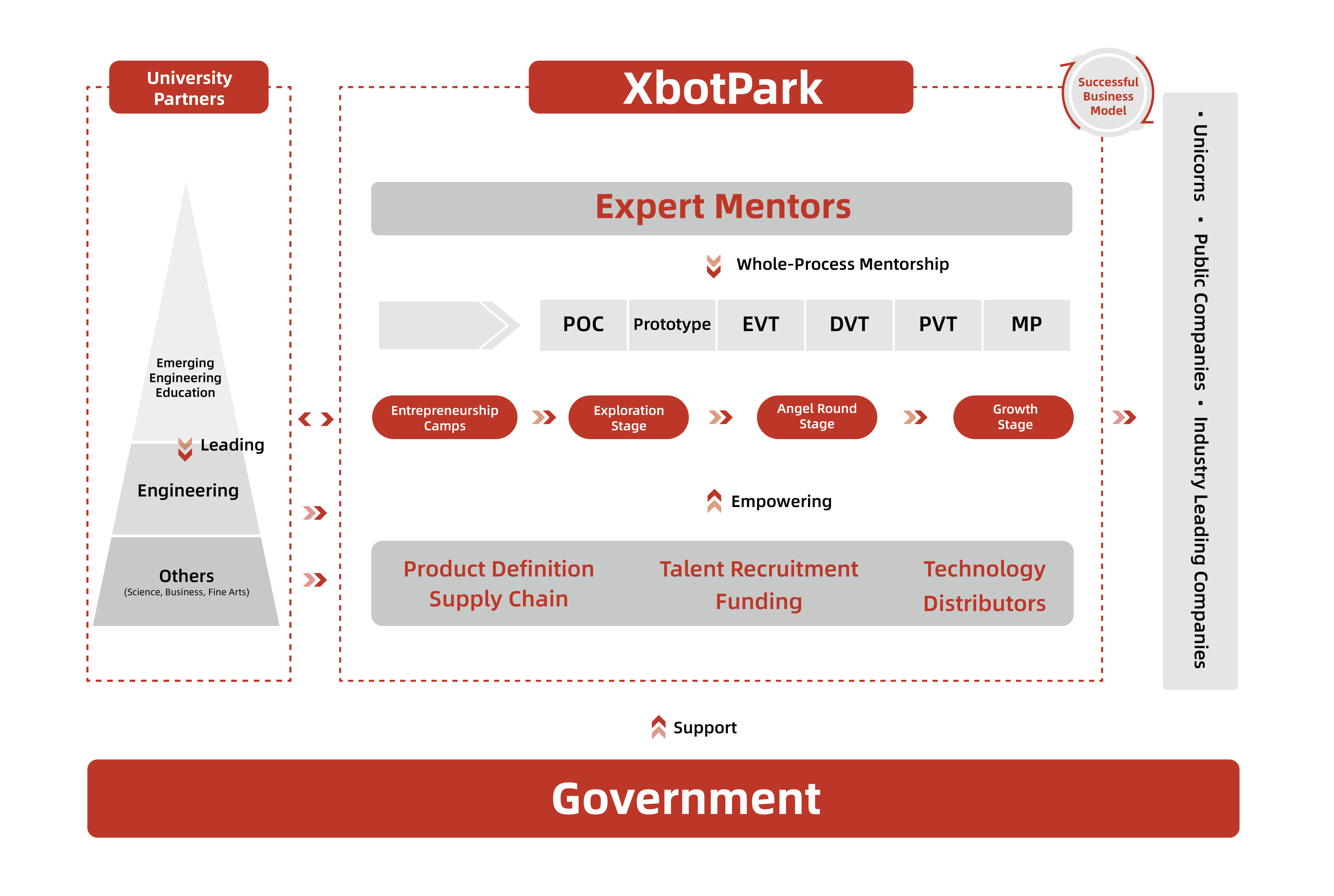 XbotPark’s robust public partnerships lend key startup support through diverse policy benefits, including the provision of local housing, office spaces, R&D facilities, and technical education opportunities.